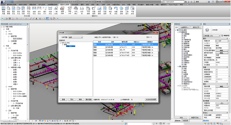 支持碰撞檢查構(gòu)件的篩選以及碰撞范圍的設(shè)置,生成沖突報(bào)告,支持二維、三維狀態(tài)的定位返查,同時支持碰撞報(bào)告導(dǎo)出。