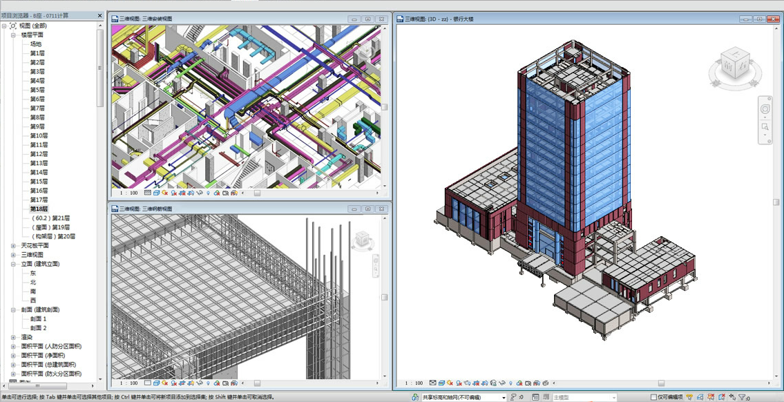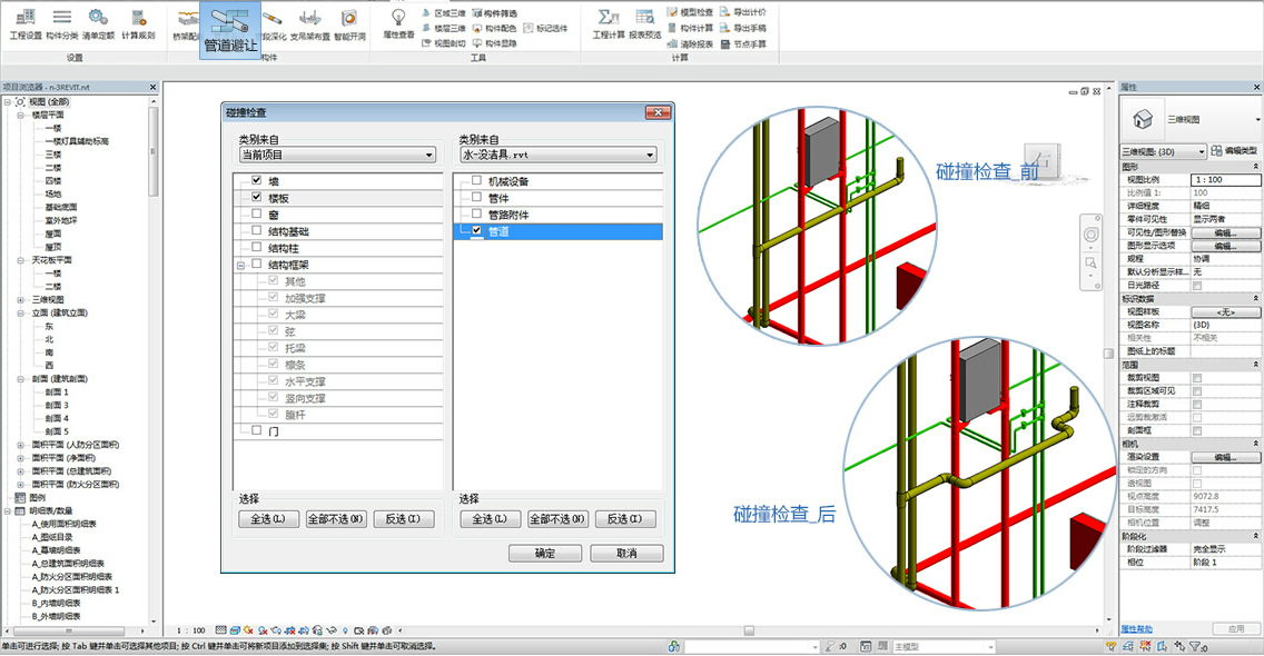 動態(tài)漫游三維模型模擬施工過程,各專業(yè)圖形進行組合,快速檢查碰撞,計算準確度高