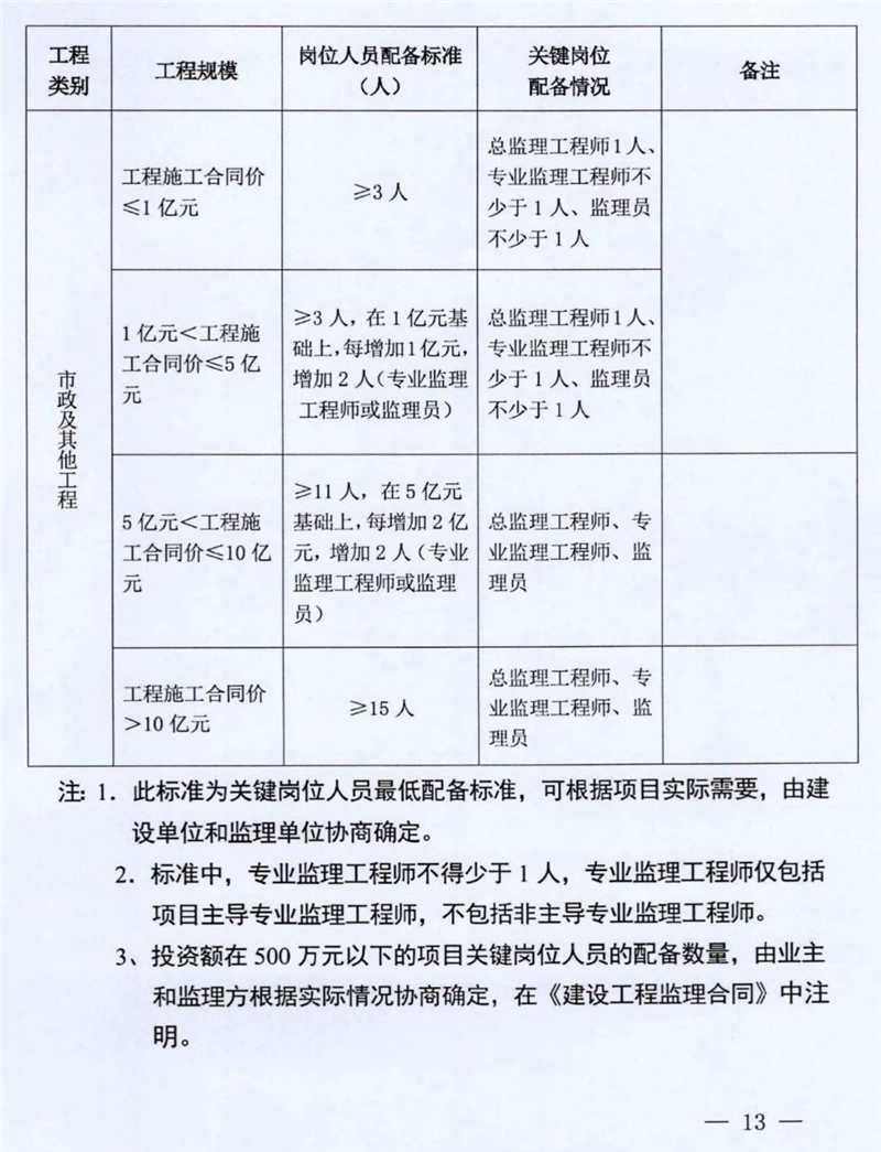 對施工項目部、現(xiàn)場監(jiān)理部關(guān)鍵崗位人員數(shù)量進行優(yōu)化縮減,僅規(guī)定不同規(guī)模最低崗位數(shù)量。