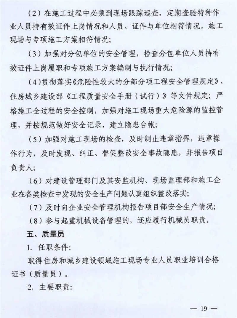 (2)因不履行崗位職責(zé)、工作失誤等原因不宜繼續(xù)擔(dān)任施工現(xiàn)場管理工作的;