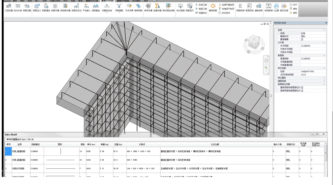 首先對(duì)已繪制的欄板進(jìn)行構(gòu)件分類,并對(duì)鋼筋信息進(jìn)行定義,接下來點(diǎn)擊布置按鈕,即可布置欄板鋼筋!