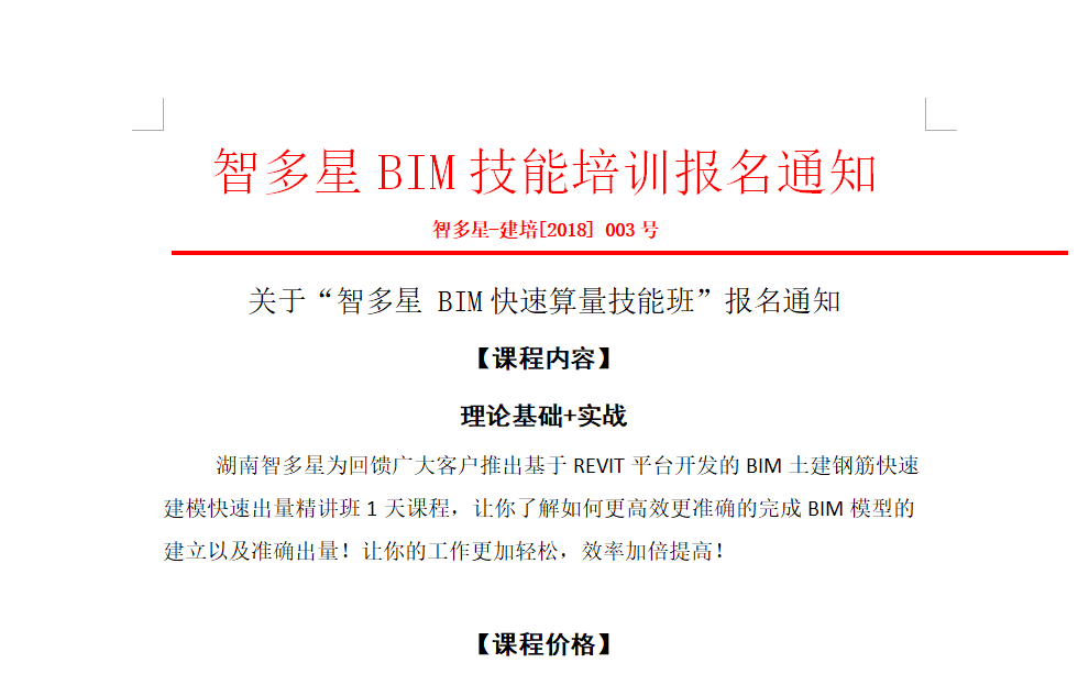 關(guān)于“智多星 BIM快速算量技能班(免費)”報名通知