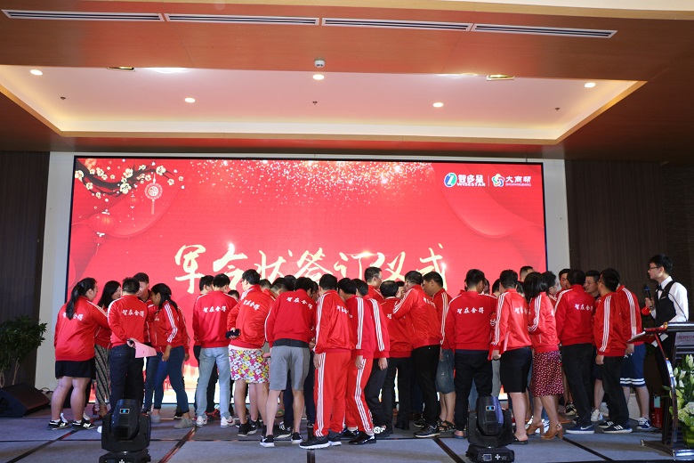 新的“領(lǐng)導(dǎo)班子”已經(jīng)確定,接下來就要當(dāng)眾簽訂2019年度目標(biāo)任務(wù)了。在豐厚的獎金面前,各銷售部摩拳擦掌,要在2019年大干一場!