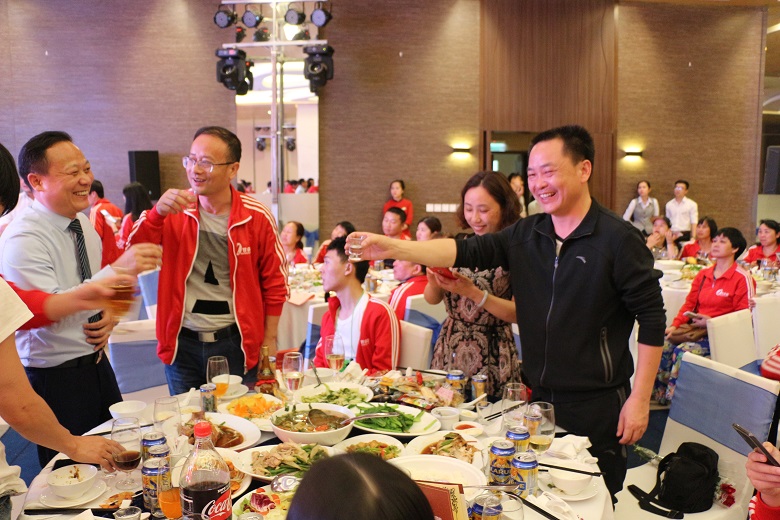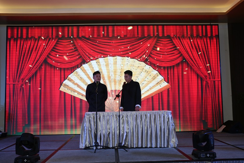 越南海關(guān)對旅客的行李物品檢查甚嚴(yán),很多物資無法順利入境,但我們年會現(xiàn)場的布置一點也不輸國內(nèi)氣派!
