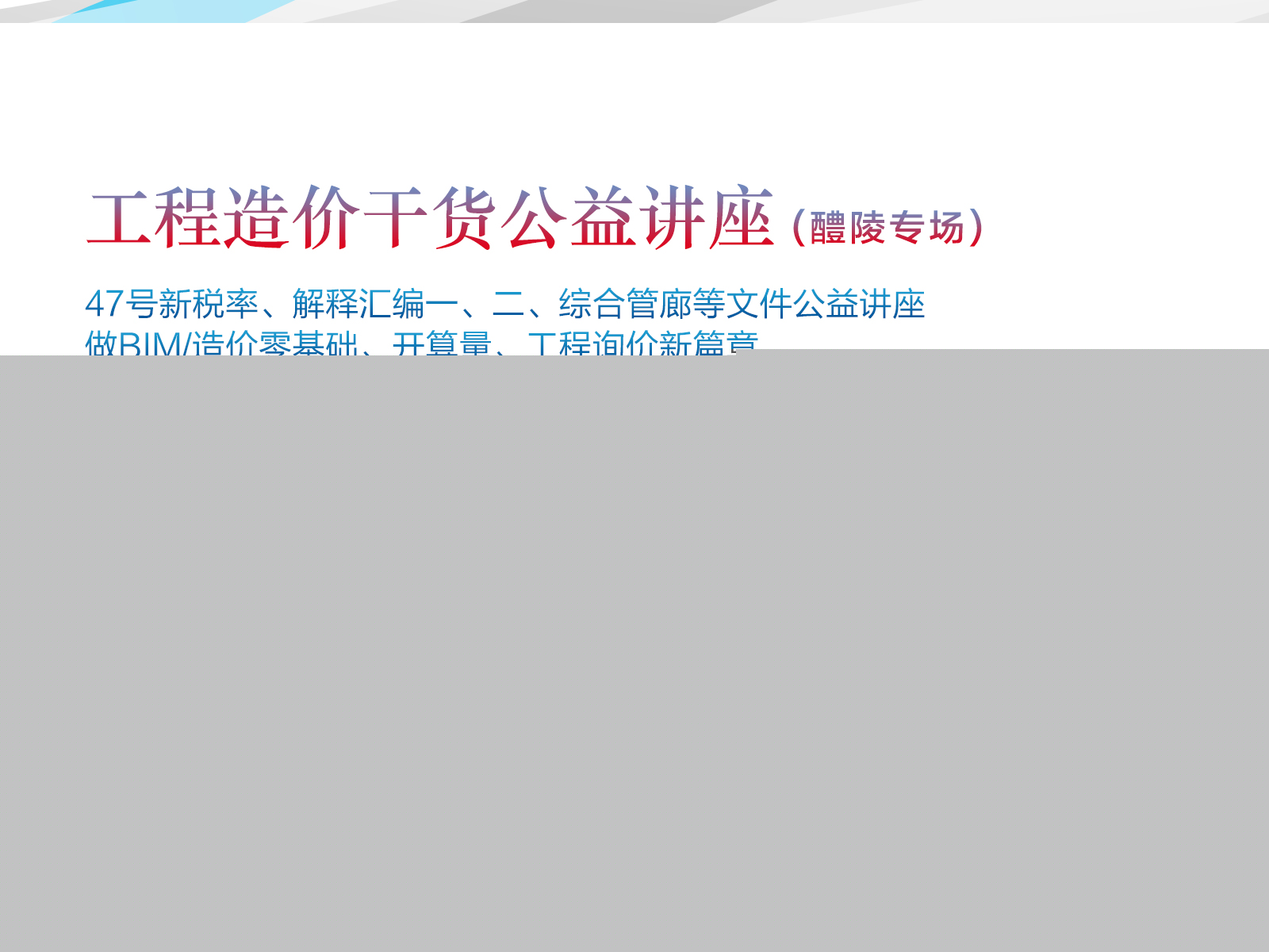 1.解讀《47號新稅率、解釋匯編一、二、綜合管廊》等相關(guān)文件和疑難問題,現(xiàn)場講解從廣大造價人員收集過來的問題。(約120分鐘)
