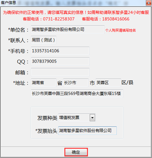 第五步:填寫并確認(rèn)客戶信息無誤后,點擊‘確定’按鈕,系統(tǒng)會自動將注冊碼寫入您的加密鎖,彈框提示您‘加密鎖注冊成功’,點擊‘確定’按鈕:
