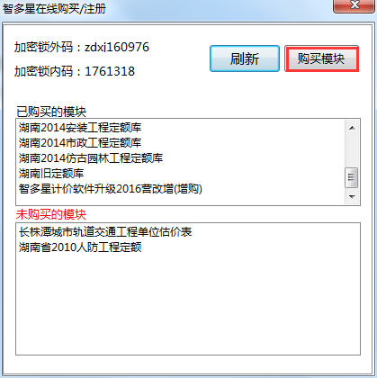 第六步:如需繼續(xù)購買其他模塊,請點擊‘購買模塊’按鈕;如無需購買,關(guān)閉對話框即可,此時您的加密鎖已成功完成2016營改增升級。